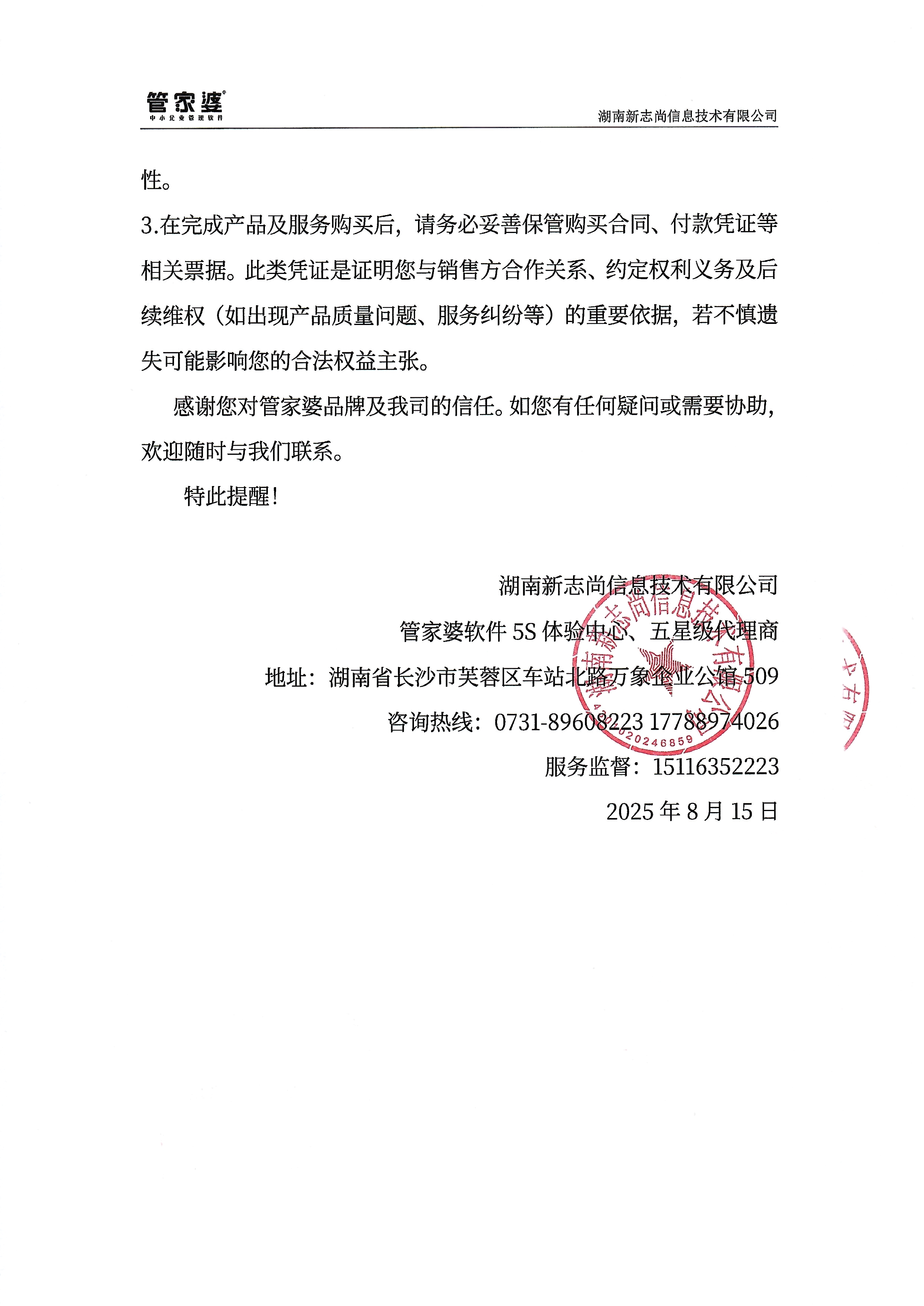 关于警惕假冒管家婆软件二次收费、数据要挟及保障数据安全的重要提示函