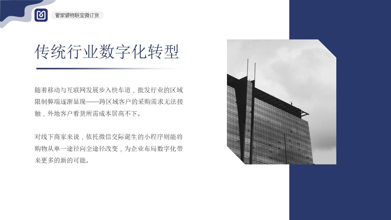 低成本高效率地实现小微批发商家变革,让商家快速拥抱新技术连接客户。