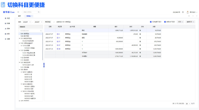 多种会计制度,多维账簿查询,图形化数据展示