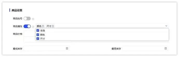 ⚫ 商品档案的属性由之前的选择属性值修改为选择属性组。