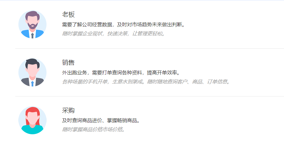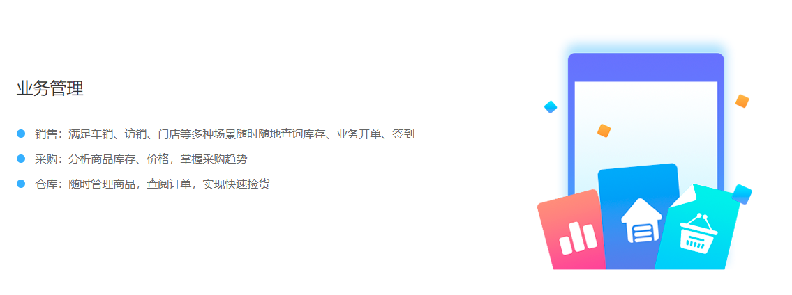 管家婆物联宝通过互联网技术以及软件交付模式的创新,基于云计算和大数据为企业提供各种场景的移动SaaS应用及服务,无需安装及维护,直接在线使用,满足各种角色(管理者、业务员、仓库人员、车间人员、财务人员、普通职员等)在任何时间和任何地点对企业事务进行管理和操作。
