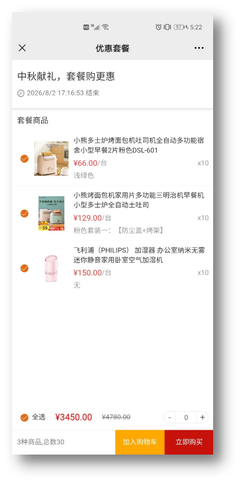 5.优惠活动:优惠券、满减、满赠、满折、限时特价、套餐、组合一应俱全,一键发布,直达客户,活动 促销不用再层层传递,口口相传,更高效。