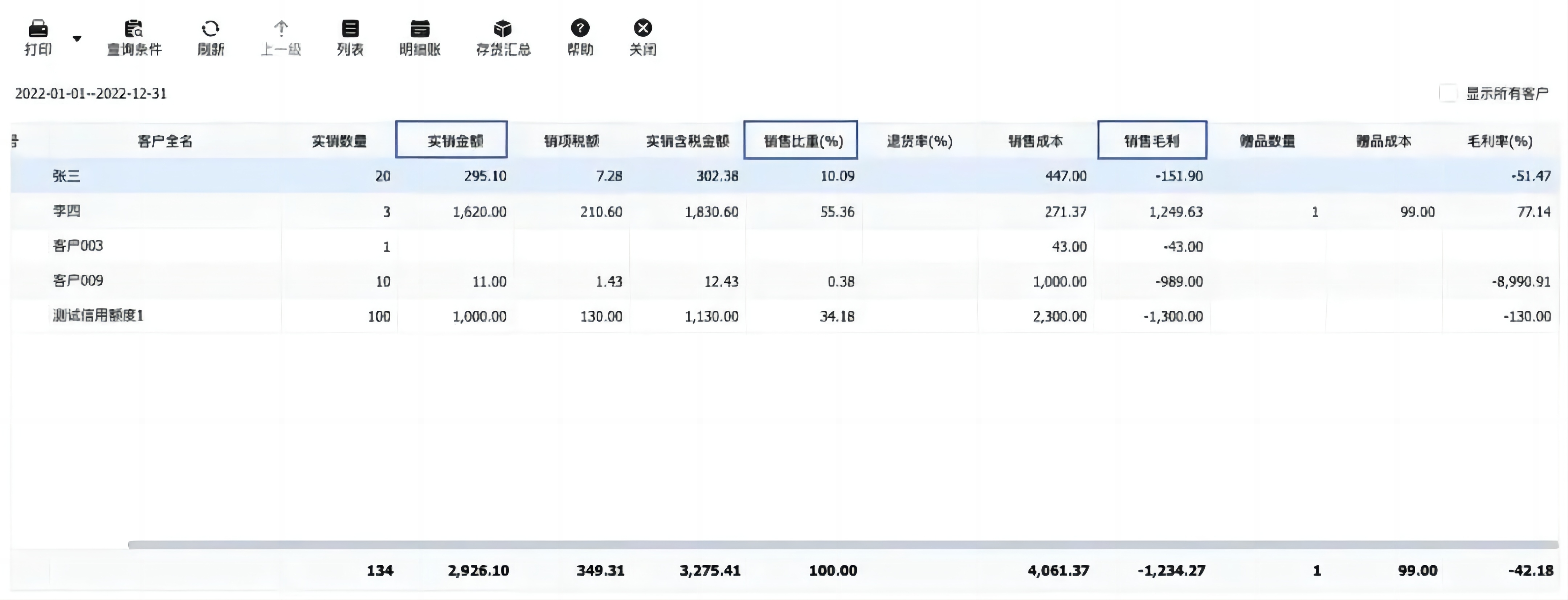 此外,经营管理者可以根据报表对所有客户做的全年销售的分析,适当去调整每个客户的信用额度,原则上不能超过客户全年销售额,提升企业资金的安全性,避免坏账的出现。