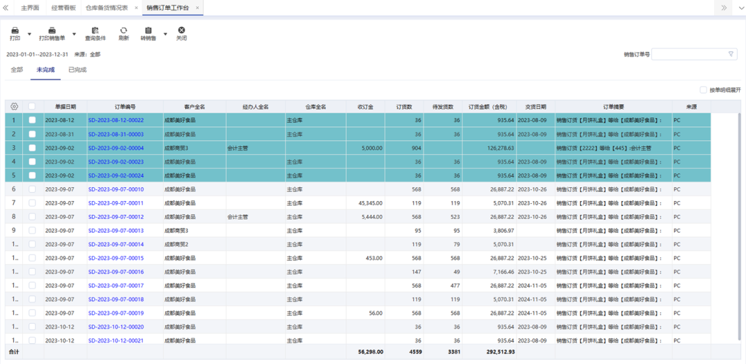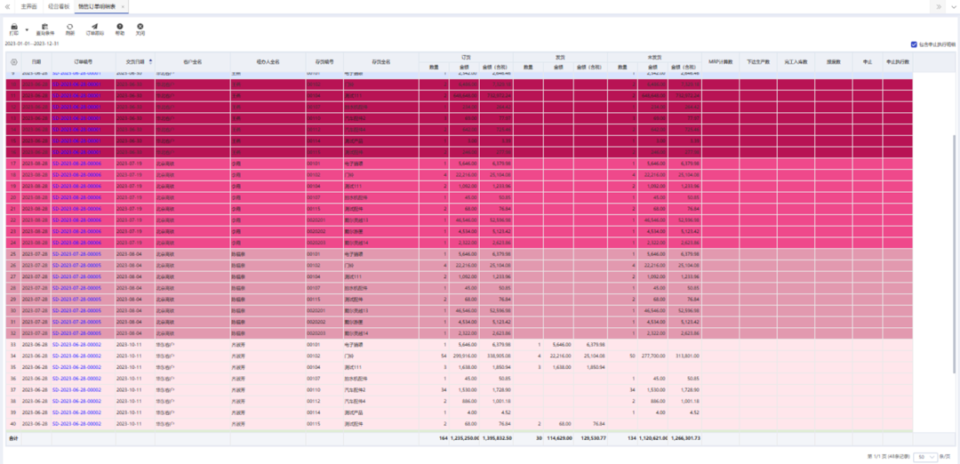 ⚫ 行标注场景示例:销售订单工作平台【未完成】页面:管理员需要快速看到:哪些订单从开单到现在已经超过35天还没有交易完成,则可以按照制单日期,将距今超过35天的数据行标注为【空山新雨】
