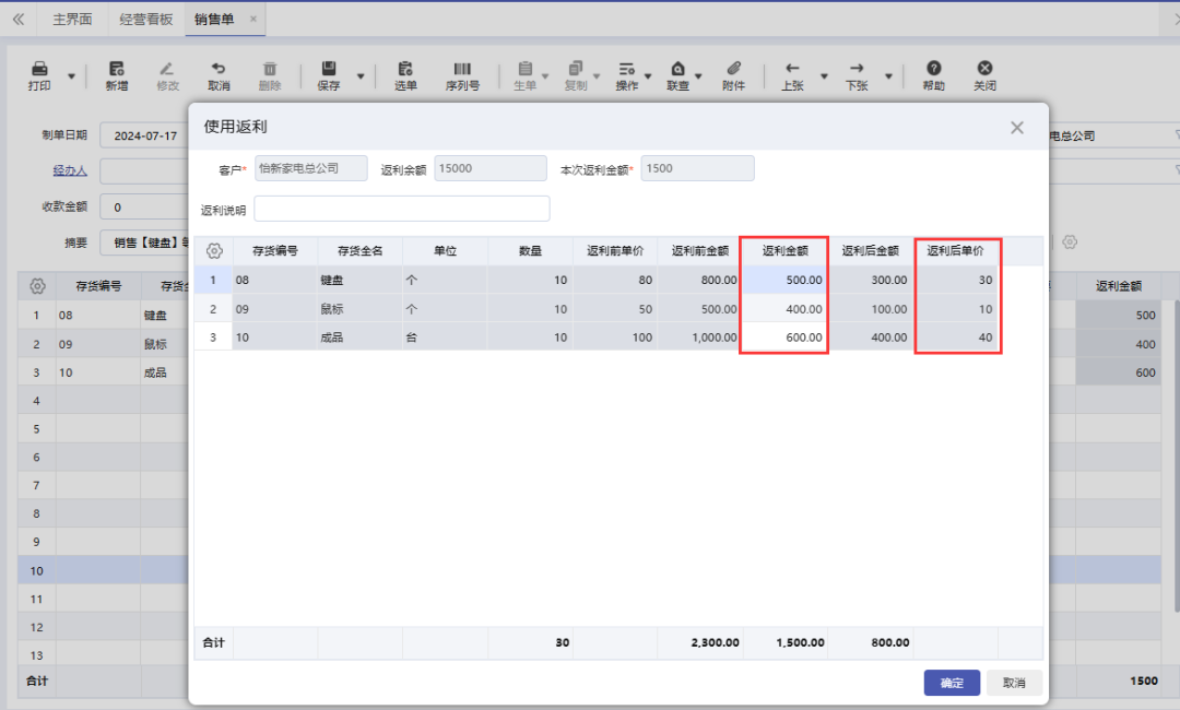 在管家婆财贸ERP系列软件中,我们支持通过【确认返利额度】【使用返利】【减少返利余额】来随时掌握返利使用情况,帮助商家实现更有效的经营。