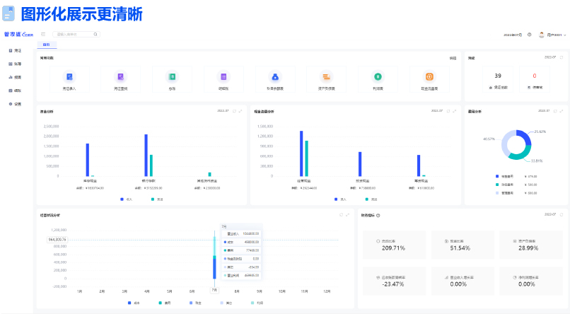 多种会计制度,多维账簿查询,图形化数据展示